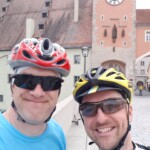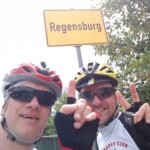 Am nächsten Morgen hatte sich der Regen weitestgehend verzogen, zwar verhieß der Wetterbericht für den kommenden Abend nichts Gutes, aber zumindest tagsüber sollte es halbwegs trocken bleiben. Das war doch schon mal eine gute Nachricht. Nach dem üppigen Frühstück ging es weiter Richtung Regensburg. Kurz hinter Schwandorf bogen wir auf den sehr gut ausgebauten Nabtalradweg, welcher uns durch das wildromatische Nabtal schickte. Nun kam schon das ersehnte Feeling auf, auch wenn wir noch nicht direkt am Donauradweg waren. Anfangs nieselte es noch etwas aber am späten Vormittag kam die Sonne durch die Wolken und so machte das „strampeln“ noch mehr Spaß. Kurz vor Regensburg kam eine schier unpassierbare Stelle auf Grund einer Schlammlawine, welche sich wahrscheinlich am Vortag von einem Hang ins Tal ergossen hatte. Wir versuchten es über eine angrenzende Wiese aber auch dort war alles voller Matsch und Dreck. Unsere Räder sahen nun aus wie nach einer Speedway-Einheit. Echt ecklig! :-O Nichtsdestotrotz ging es weiter zur Hauptstadt der Oberpfalz. In Regensburg angekommen war es inzwischen so warm, dass wir im luftigen T-Shirt weiter radeln konnten. Ein kurzer Besuch an der gerade fertig renovierten Steinernen Brücke, ein paar Fotos von der Altstadt und ein leckeres Mittagessen an der Donau machten uns Freude. Und nun waren wir endlich auch auf dem Donauradweg, das eigentliche Ziel unserer Reise (der Weg ist ja bekanntlich das Ziel) und so fuhren wir zunächst durch herrliche Auenlandschaften und genossen das schöne Wetter. Da auch für den Abend und die Nacht wieder heftige Gewitter angekündigt waren, hatten wir uns schon am frühen Nachmittag eine Pension gebucht. Pünktlich, kurz vor 18:00 Uhr, sind wir an der Herberge aufgeschlagen und es fing (wie in der grandiosen WetterApp angekündigt) an zu regnen. Die Pension hatte wieder ähnlichen „Palast-Charakter“, wie am Vortag. Also wir waren doch irgendwie nur zum Glück auf der Welt … !! Nach einem leckeren Abendbrot beim örtlichen Italiener kamen wir gerade noch so trockenen Fußes wieder ins Hotel zurück und schon lagen wir in unseren Betten und lauschten dem heftigen Gewitter.
