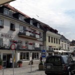 In Schwandorf hatten wir schon auf der Durchfahrt eine Pension gesehen, die wir nun direkt ansteuerten. Dort angekommen sagte uns die Wirtin, sie habe genau noch ein Zimmer frei und das könnten wir haben. Das Zimmer entpuppte sich als wahrer Palast mit zwei Schlafzimmern und riesigem Bad, Küche und Wohnraum mit 50″-TFT-Fernseher. WLAN war auch vorhanden und so residierten wir wie die Fürsten für 70 EUR die Nacht. Klasse! Zwar nicht so das wildromantische Abneteuer in unseren Zelten, aber wenigstens eine noble Alternative. Das Abendbrot schmeckte auch und so hofften wir, dass es an den folgenden Tagen trockener und sonniger werden würde und so unsere Zelte zum Einsatz kommen könnten. Aber in der Nacht gab es erst noch einmal ein ordentliches Gewitter, so dass wir wirklich froh waren, nicht im Zelt zu liegen!