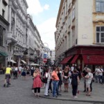 Samstag ging es zu Fuß Richtung Innenstadt. Wir wollten uns die Stadt, so weit es ging, zu Fuß erobern. Der Weg führte uns direkt über den traumhaften Viktualien-Markt wo uns schon die Augen übergingen von den vielen bunten Gewürzen, Obst- und Gemüsesorten und anderen aufregenden Köstlichkeiten. Samstag Vormittag war dort naturgemäß die sprichwörtliche Hölle los. Aber wir schoben uns fleißig durch die Menschenmenge und sogen den Wiener Charm in uns auf. Beim Weiterschlendern stolperten wir in ein aufregendes Fahrradgeschäft, welches uns recht lange in seinem Bann hielt. Dort waren keine gewöhnlichen 0815-Räder zu sehen sondern fast alles ausgesuchte Top-Modelle für jeden beliebigen Anwendungszweck. Daniel der ausgemachte Fahrrad-Experte erklärte mir die aufregenden Details. Nachdem wir uns das historische Zentrum mit Stephansdom, Deutschordenskirche, Akademie der Wissenschaften und all den anderen fantastischen Bauwerken besichtigt hatten kam langsam Hunger auf. Direkt am Donauufer war mal wieder ein chinesischer Imbiss zur Stelle uns mit dem Notwendigen zu versorgen. Dabei entdeckten wir auch gleich eine Anlegestelle der Donauschifffahrt und kauften uns flugs zwei Tickets. Die kleine „Kreuzfahrt“ brachte uns dann über die innere Donau einmal um die Donauinsel und wieder zurück zur Anlegestelle. Anschließend erkundeten wir noch ein wenig die großzügig angelegten Parks, besuchten ein kleines Foto-Museum und ließen den Abend in einem Vegi-Restaurant in der Nähe vom Hotel ausklingen.
