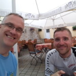 Nachdem uns kurz nach Fünf, die Donauspatzen wach geschrien hatten sind wir schon wesentlich eher gestartet, als geplant. Im späteren Verlauf des Tages sollte sich das noch als goldrichtig herausstellen. Kurz nach Sieben ging es los, auf dem Donauradweg, Richtung Melk, dem ersten Zwischenstopp des Tages. Nach etwas weniger als dreißig Kilometern in Melk angekommen, gab’s auf dem Marktplatz original Wiener Melange und Sachertorte. Wir waren ja schließlich in Österreich! Weiter ging es anschließend nach St. Pölten, der Landeshauptstadt von Niederösterreich. Irgendwie kam mir der Name bekannt vor. Ich dachte die ganze Zeit darüber nach, was für ein Ereignis regelmäßig in St. Pölten stattfindet … Endlich angekommen hatten wir uns eine Mittagspause verdient und fanden im Stadtzentrum einen kleinen, aber feinen indischen Imbiss. Jetzt noch ein Eis, meinte Daniel und wir begaben und sogleich auf die Suche. Eine Eisbar fanden wir erst mal nicht, dafür aber einen Hinweis auf die Sportveranstaltung, die regelmäßig in St. Pölten stattfindet! Es ist der 70.3 IRONMAN … na klar! Somit konnten wir uns einen Teil der Laufstrecke ansehen und vielleicht komme ich ja bei Gelegenheit mal wieder, um als Teilnehmer in St. Pölten zu starten, wer weiß … Die Hälfte war nun geschafft und kurz hinter St. Pölten gab es auch ein kleines Café welches mit gemischtem Eis und Schlagobers sowie veganen Waffeln für Daniel aufwarten konnte. Das nächste avisierte Zwischenziel war der Wienerwaldsee, aber ein Blick in die Streckenbeschreibung verriet uns, dass zuvor ein langer Kanten mit ordentlich Höhenmetern auf uns wartete. Da wir die Tage zuvor teilweise etwas „gebummelt“ hatten, verließen wir nach St. Pölten den Donauradweg und fuhren auf diversen anderen Radwegen weiter. Der lange Kanten erwies sich als wirklich hart, besonders für mich, da ich ja rund dreißig Kilo mehr an Gewicht und Gepäck hochzuschleppen hatte … aber was soll’s. Bei rund 380 m war der höchste Punkt erreicht und danach rollte es fast von alleine, immer bergab! Leider gab es auf dem Radweg in die Stadt kein typisches Ortseingangsschild, wo wir unsere Ankunft feiern und mit den obligatorischen Selfies hätten schmücken können und so nahmen wir das Schloß Schönbrunn als Kulisse für unser Posing. Jetzt waren es nur noch 14 km bis zum Hotel und die waren dank einwandfreier Navigation von Daniels neuem Bikecomputer schnell herunter gestrampelt. Somit waren wir nach rund 650 km von Bayreuth nach Wien wohlbehalten, gesund und munter am Ziel angekommen. Zwischendurch hatten wir da schon gewisse Zweifel … vor allem nach der Schlamm- und Material-Schlacht vom Mittwoch. Beide Bikes haben dabei kleinere Blessuren davon getragen. Aber auch das war nun unter Lehrgeld zu verbuchen und gab uns Anhaltspunkte für zukünftige Touren. Nun freuten wir uns auf zwei schöne Tage in Wien.